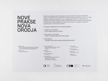 Razstava oz. projekt Nove prakse, nova orodja si prizadeva osvetliti način delovanja sodobnih »slovenskih« arhitekturnih praks. Povod za projekt so bili trije pogovori med sodelujočimi arhitekti z Matevžem Čelikom in Miko Cimolini, v katerih so ugotavljali, kakšne organizacijske, projektantske in druge strokovne novosti uvajajo v svoje delo in s tem spreminjajo način, kako razumemo arhitekturno dejavnost danes.