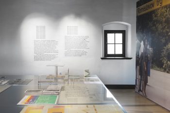 Razstavna konstrukcija iz polizdelkov standardnih dimenzij je sestavljena na mestu in se po zaključku razstavi v prvotno stanje. Arhivske fotografije kot tapete na obstoječih stenah ustvarjajo gledališko kuliso.